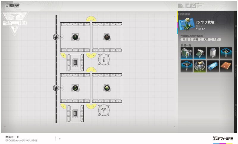 本図面では綿草と芽針を生産しますが、この図面1つで水源1つ分の配水が必要となるので、複数図面を設置する場合は注意してください。